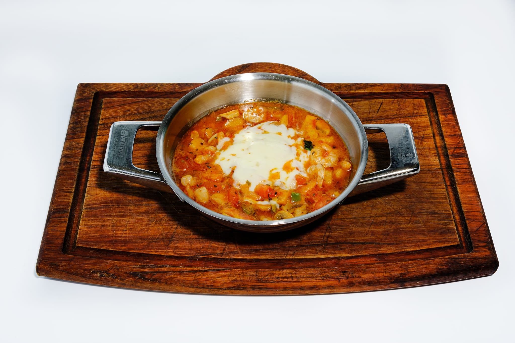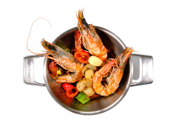 Jumbo Karides, mantar, sarımsak, kapya biber, yeşil biber, tereyağ, baharat
