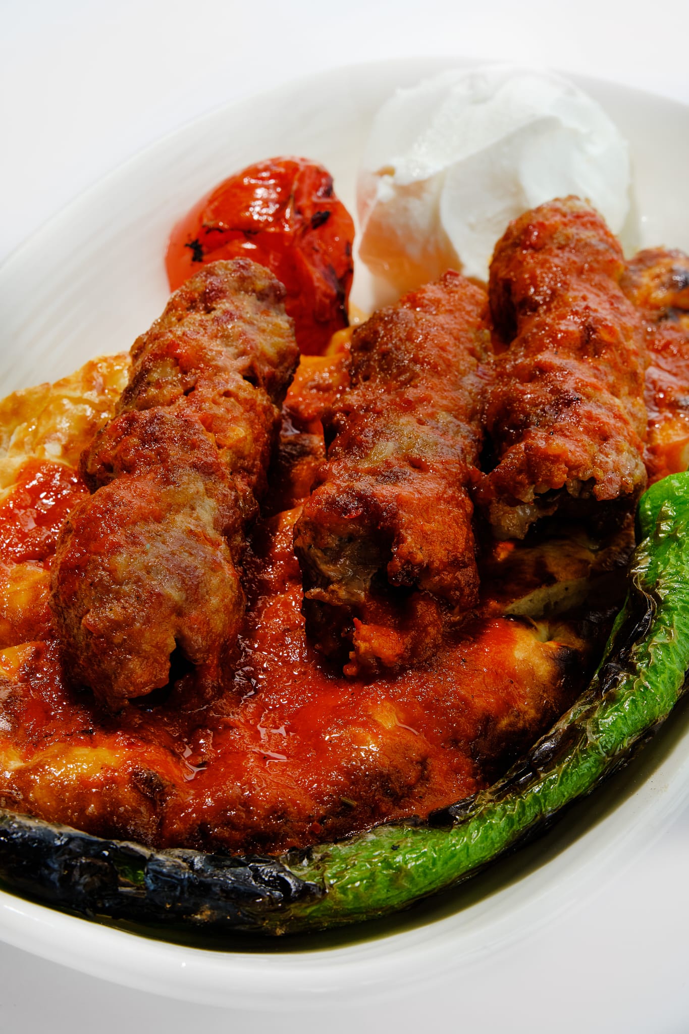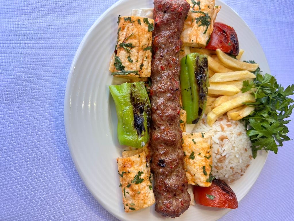 Dana eti, kuzu eti, domates, biber, maydanoz, pilav